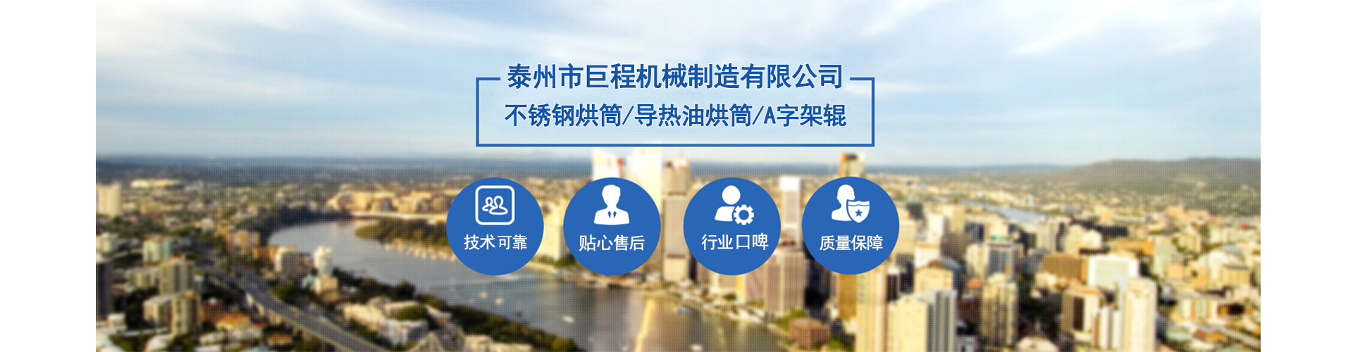 泰州市巨程機(jī)械制造有限公司 泰州市巨程機(jī)械制造有限公司泰州市巨程機(jī)械制造有限公司是一個(gè)專(zhuān)業(yè)生產(chǎn)不銹鋼烘筒、導(dǎo)熱油烘筒、雙層冷水輥、A字架輥、染整設(shè)備等產(chǎn)品的機(jī)械公司。我公司注重產(chǎn)品質(zhì)量,講求企業(yè)信譽(yù)。我公司重點(diǎn)在于內(nèi)部管理,努力提高產(chǎn)品質(zhì)量,強(qiáng)化全體員工的服務(wù)意識(shí),形成了一套我廠的用戶(hù)定期回訪制度,積極搜集廣大用戶(hù)在使用我廠設(shè)備過(guò)程中反饋回的各種信息,有針對(duì)性的組織人員進(jìn)行專(zhuān)項(xiàng)攻關(guān)